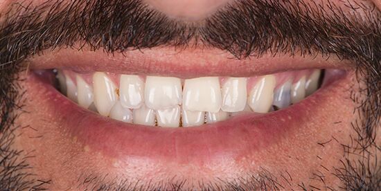 Porcelain is much different than a composite (chairside) veneer. Teeth that don’t need full coverage or where only one or two teeth are involved may not need a set of multiple veneers. Instead, a tooth-colored composite material is shaped over the small flaw. But composite dental veneers are not as durable as porcelain or ceramic and they stain easier nor do they offer the lifelike coloration seen in porcelain. If you need to have several teeth covered, the advantages of porcelain veneers are far superior to composite.